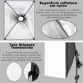 Softbox com abertura simples e prática, conta com bocal padrão de lâmpadas (E-27), tela branca difusora para fornecer uma luz mais difusa, mais plana.
