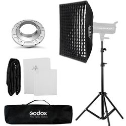 Este kit é composto com um tripé Greika de 2,4 metros e um softbox 60x90 cm Godox com Grid e telas difusoras, desenvolvido para estúdios fotográficos para uso com flashes/tochas.